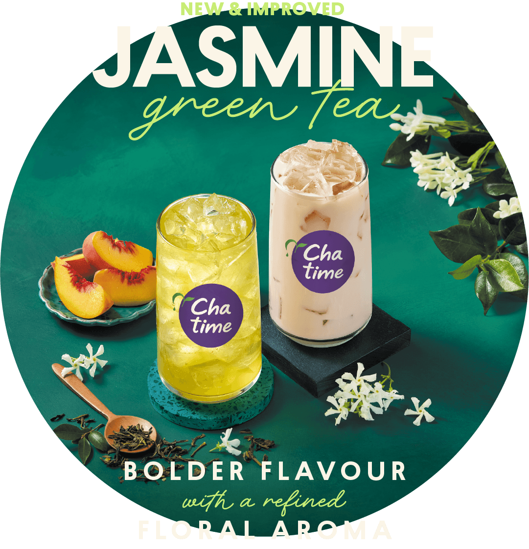 Introducing our new and improved Jasmine Green Tea. A bolder flavour with a refined floral aroma, the perfect pairing to your cup of Chatime.